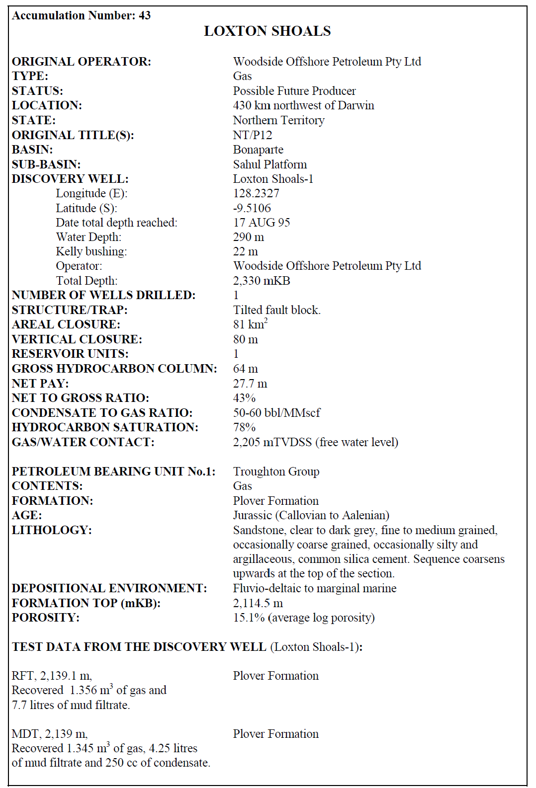 Data source: Cadman, S.J. and Temple, P.R., 2004. Bonaparte Basin, NT, WA, AC & JPDA, Australian Petroleum Accumulations Report 5, 2nd Edition, Geoscience Australia, Canberra.
