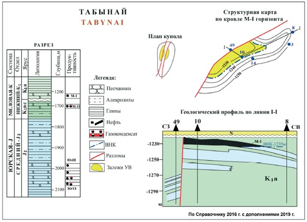Газонефтяное месторождение Табынай находится на крайнем юге Южно-Эмбинской НГО, в районе погребенного Южно-Эмбинского поднятия, в зоне выклинивания соленосных отложений. Здесь по мезозойским отложениям закартирован небольшой купол северо-восточного простирания с четко выраженными двумя крыльями и центральным грабеном. На крыльях и в грабене в отложениях мела и юры разведаны залежи углеводородов. На юго-восточном крыле продуктивны отложения мела, на северо-западном известны залежи в юре и нижнем мелу, в грабене разведаны юрские залежи.