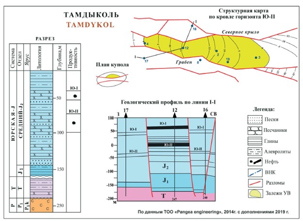 Нефтяное месторождение Тамдыколь находится в Прикаспийской впадине, в пограничной зоне между Центрально- и Восточно-Прикаспийско НГО. В структурном отношении месторождение приурочено к крупному соляному массиву с размерами 25 х 53 км. На его северном приподнятом крыле, на берегу одноименного озера еще в прошлые века были известны выходы на дневную поверхность пород, пропитанных нефтью. Вырытые для получения питьевой воды вокруг данных обнажений неглубокие колодцы быстро заполнялись нефтью, которая использовалась в быту. Любопытно отметить, что такой <<дедовский метод>> добычи нефти продолжался длительное время и в 1930-1950 годы прошлого столетия приобрел промышленную значимость. В 1944 году суточная добыча нефти из многочисленных колодцев достигала 0,8 тонн в сутки. Нефть использовалась в качестве топлива на Уильской электростанции.