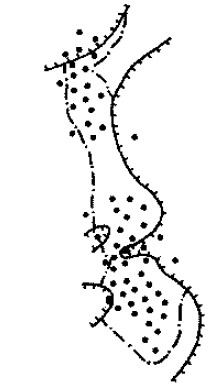 Рис.1. Карта контуров залежей в ДI. Геологический профиль