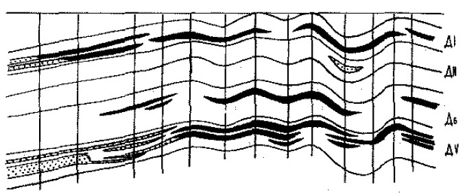 Залежь нефти в песчаниках ДV структурно-литологическая. Мощность нефтенасыщенной части (в среднем) 2,2 м, пористость 15%, проницаемость 0,22 мкм2.