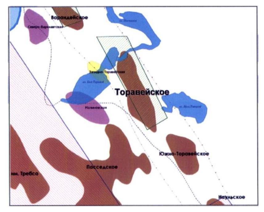 В нефтегазоносном отношении Торавейское месторождение, также как и Варандейское, расположено в пределах вала Варандей-Адзьвинской нефтегазоносной области, которая входит в состав Тимано-Печорской провинции.
