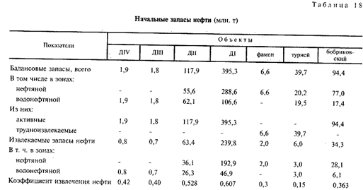 Начальные запасы нефти по последнему подсчету (утвержденных ГКЗ или числящихся на балансе ВГФ) приведены в табл. 18.