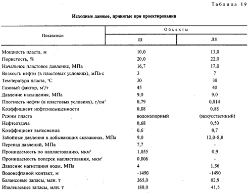 Проектные решения сводились к следующему. Расчетное число добывающих скважин -360. Расстояние между скважинами в ряду 400, между рядами - 500 м. Число рядов - 7. Число нагнетательных законтурных скважин - 30. Суточная добыча нефти 18600 т/сутки (6,8 млн. т в год), при среднем дебите - 56 т/сутки.