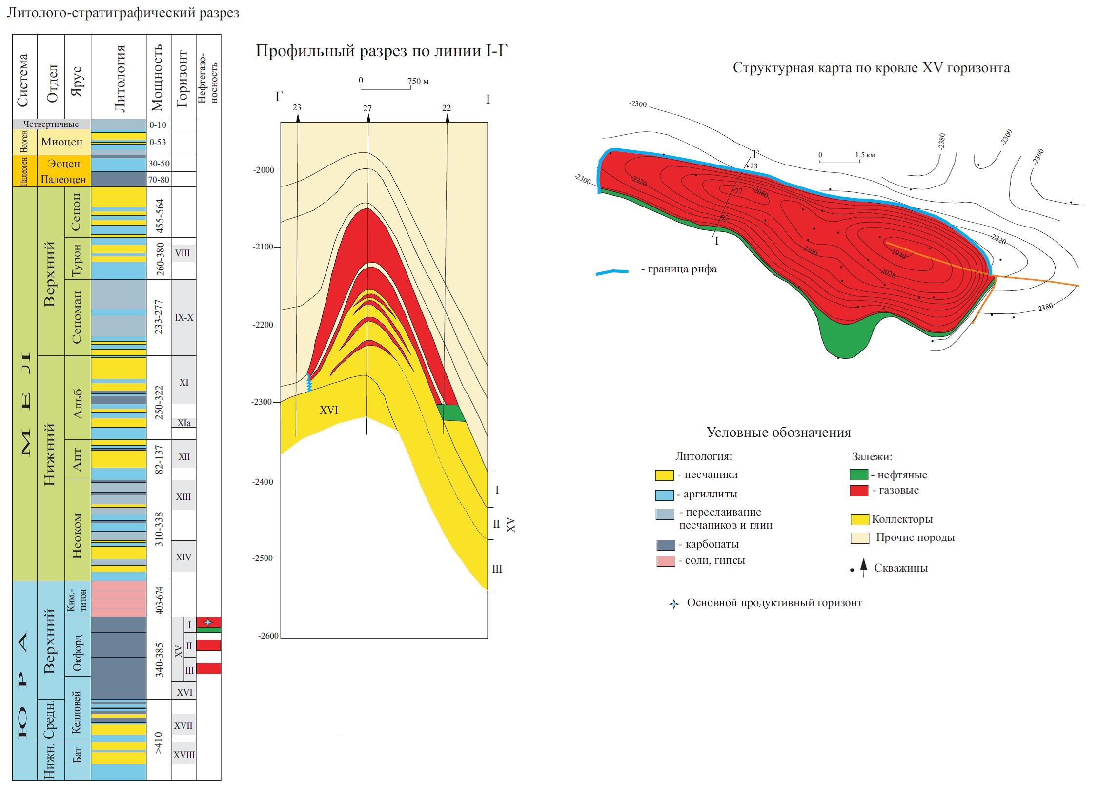 Промышленные притоки газа были получены из многочисленных скважин с глубины 2409 м из карбонатной формации верхней юры. Продуктивная часть карбонатной формации месторождения Уртабулак в производственной практике стала именоваться XV-P и XV-HP (рифовый и надрифовый горизонты). Это в основном водорослевые, обломочные, органогенные известняки, в различной степени доломитизированные, сильно (24-26%) пористые и кавернозные. Залежь сводовая, массивная, покрышкой служат галогенные образования кимеридж-титона.