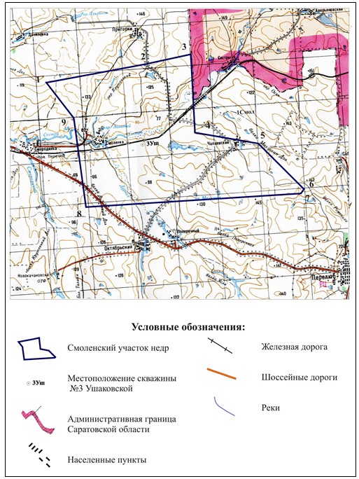 Ушаковское месторождение расположено в Перелюбском районе Саратовской области, в 11 км к востоку от ж/д. ст. Новоперелюбская. Районный центр – г. Перелюб – находится в 22 км к юго-востоку (рис. 1.).