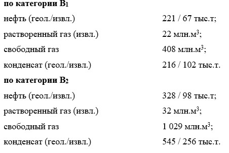 Впервые запасы газа и конденсата пласта D2vor воробьевского горизонта утверждены в оперативном порядке протоколом Роснедра № 18/19-пр от 23.01.2009 г. Запасы нефти и растворенного газа пласта D3sr-D3sm семилукско-саргаевского горизонта впервые посчитаны оперативно и утверждены протоколом Роснедра № 18/278-пр от 02.05.2012г.