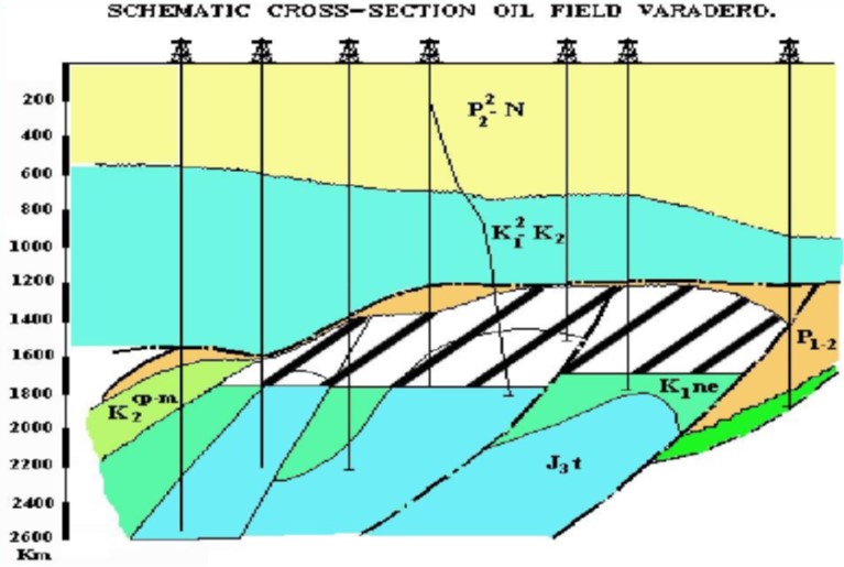 Месторождение Варадеро – одно из крупнейших в стране с начальными геологическими запасами нефти более 160 млн м3, представлено нижнемеловыми и верхнеюрскими карбонатными глубоководными отложениями, которые характеризуются сложным блоковым строением, значительной степенью выработанности. Разведка и разработка месторождения до 2000 г. выполнялись вертикальными скважинами с небольшим зенитным углом.