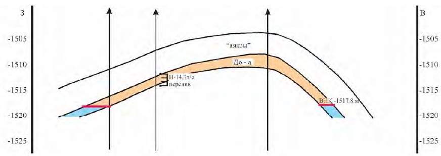 Рис.1. Восточно-Анзирское месторождение. Схематический геологический профиль продуктивных отложений верхнего девона