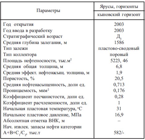 Табл.1. Геолого-физические характеристики продуктивных отложений Восточно-Анзирского месторождения