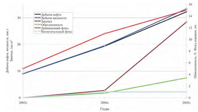 В 2005 г. отбор нефти составил 32,2 тыс.т. Среднегодовая обводненность – 3,4%.