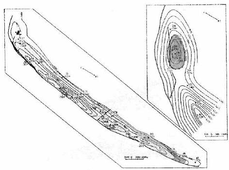 Размеры залежи северной периклинали в пределах контура газоносности составляют 38x4—5 км, высота около 1300 м. Размеры на юге в пределах контура ГВК - 30x3-5 км, высота порядка 700 м (рис.1,2).