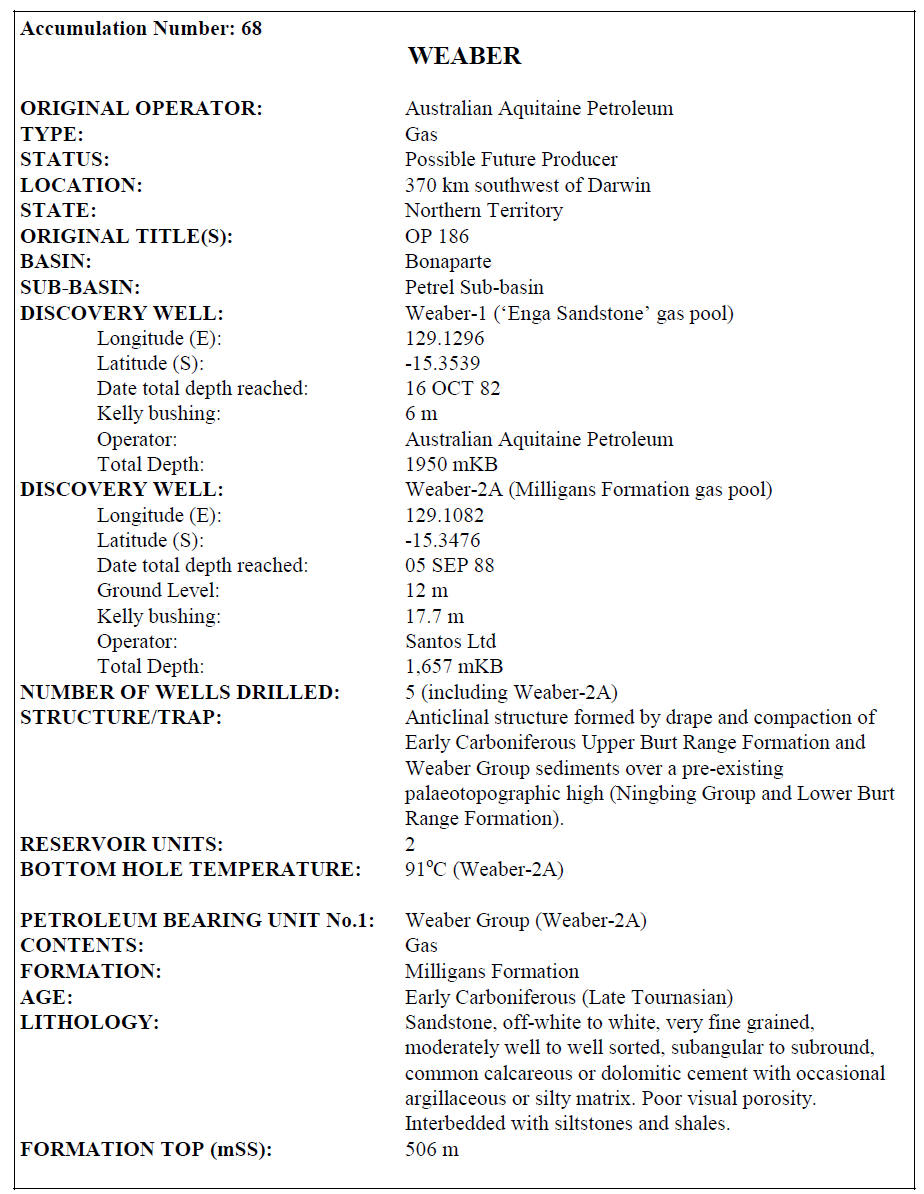 Data source: Cadman, S.J. and Temple, P.R., 2004. Bonaparte Basin, NT, WA, AC & JPDA, Australian Petroleum Accumulations Report 5, 2nd Edition, Geoscience Australia, Canberra.