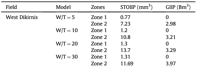 Depositional and petrophysical controls on the volumes of hydrocarbons trapped in the Messinian reservoirs, onshore Nile Delta, Egypt Accurate calculations of STOIIP and GIIP are crucial for hydro- carbon exploration and development. Therefore, they are the most important priority tasks before defining the economically pro- spective reserves. The STOIIP and GIIP values are controlled by the percentage of the best reservoir quality facies in the geologic model. Therefore, accurate facies modelling approach is very crucial in hydrocarbon volumes calculations. Facies modelling was carried out on the basis of the available well data (well logs and cores). In WD Field, zone 1 contains the sediments of the distal part of the delta accumulated in distal sand bars, tidally-influenced mouthbars and distributary channels . Zone 2 represents the pro- grading deltaic sediments and enriched in coarse-grained materials accumulated in the delta-plain and proximal delta-front (Fig. 19). Several models were used in order to investigate the impact of channel width/thickness ratio (W/T) on the calculated STOIIP and GIIP. For the delta distributary channels, the most com- mon W/T ratios are ranging from 5 to 30. The width of the Qawasim distributary channels is unknown, however the maximum amalgamated thickness based on the sedimentological facies analyses, is approximately 25 m. The initial W/T ratio increases from 5 in model 1 to 30 in model 4 corresponding to an increase in the width of delta distributary channels from 125 m in model 1e750 m in model 4. Both the STOIIP and GIIP in- crease linearly with increasing the width of the channels and the W/T ratio. The volume of the actual oil reserves in WD Field is 8 Mm3, whereas the gas reserves is 3.19 Bm3, consistent with the STOIIP and GIIP values from model 1 (W/T 1⁄4 5) indicating that the actual width of an individual distributary channel is approximately 125 m.