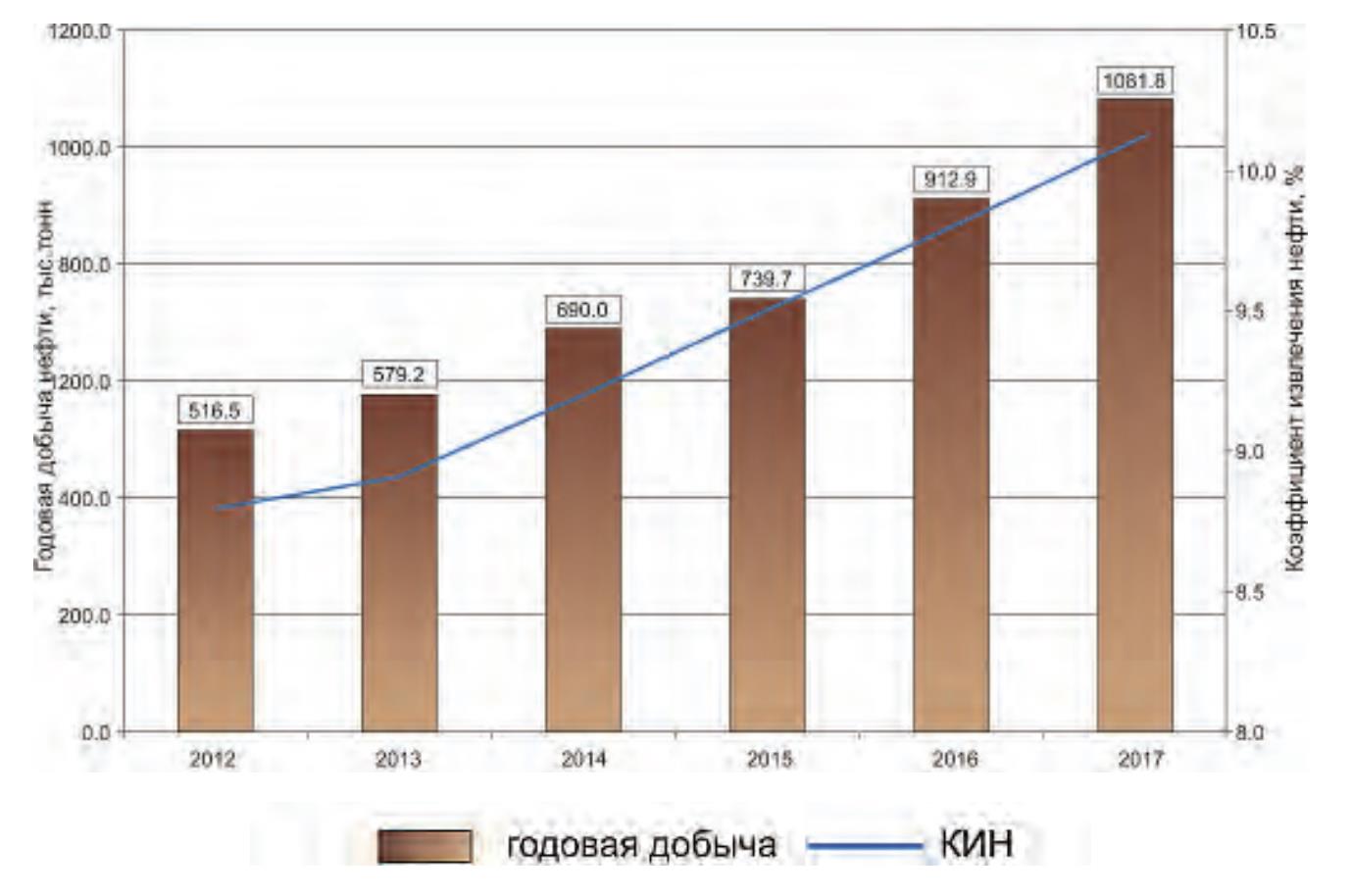 В 2016 году ОАО «ЛУКОЙЛ» реализовал крупнейший инвестиционный проект «Ярега-1», в рамках которого построен ряд производственных объектов. В конце года вместе с новым пунктом подготовки и сбора нефти здесь была запущена в эксплуатацию уникальная водоподготовительная установка ВПУ- 700. По итогам 2016 года добыча нефти на Ярегском месторождении выросла на 23 % и составила 912,886 тыс. тонн, в 2017 году добыча составила 1 081,789 тыс. тонн высоковязкой нефти (рис. 3).
