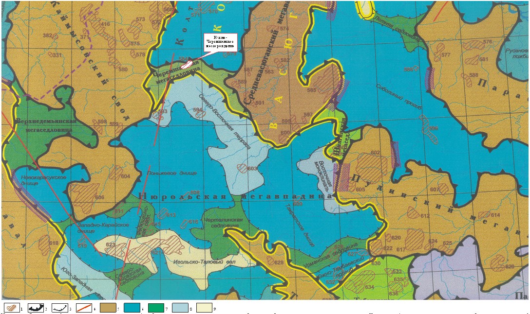 В структурном плане платформенного чехла район работ расположен в пределах Черемшанской мегаседловины разделяющей Каймысовский свод, Средневасюганский мегавал, Нюрольской мегавпадину и Колтогорский мегапрогиб. (рис.2.2).
