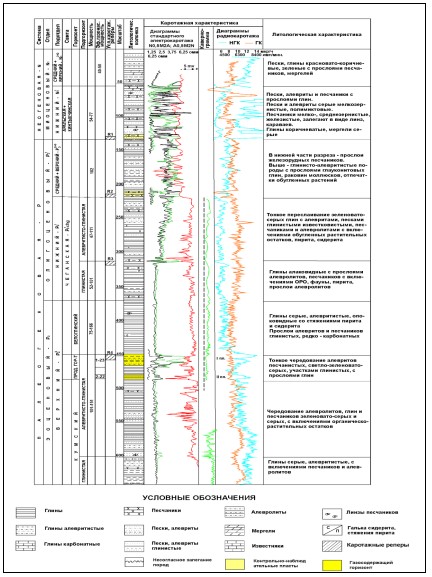 На площади Жаманкоянкулак наиболее полно изучены палеогеновые и неогеновые отложения. Сводный геолого-геофизический разрез палеогеновых и неогеновых отложений представлен на рисунке 1.