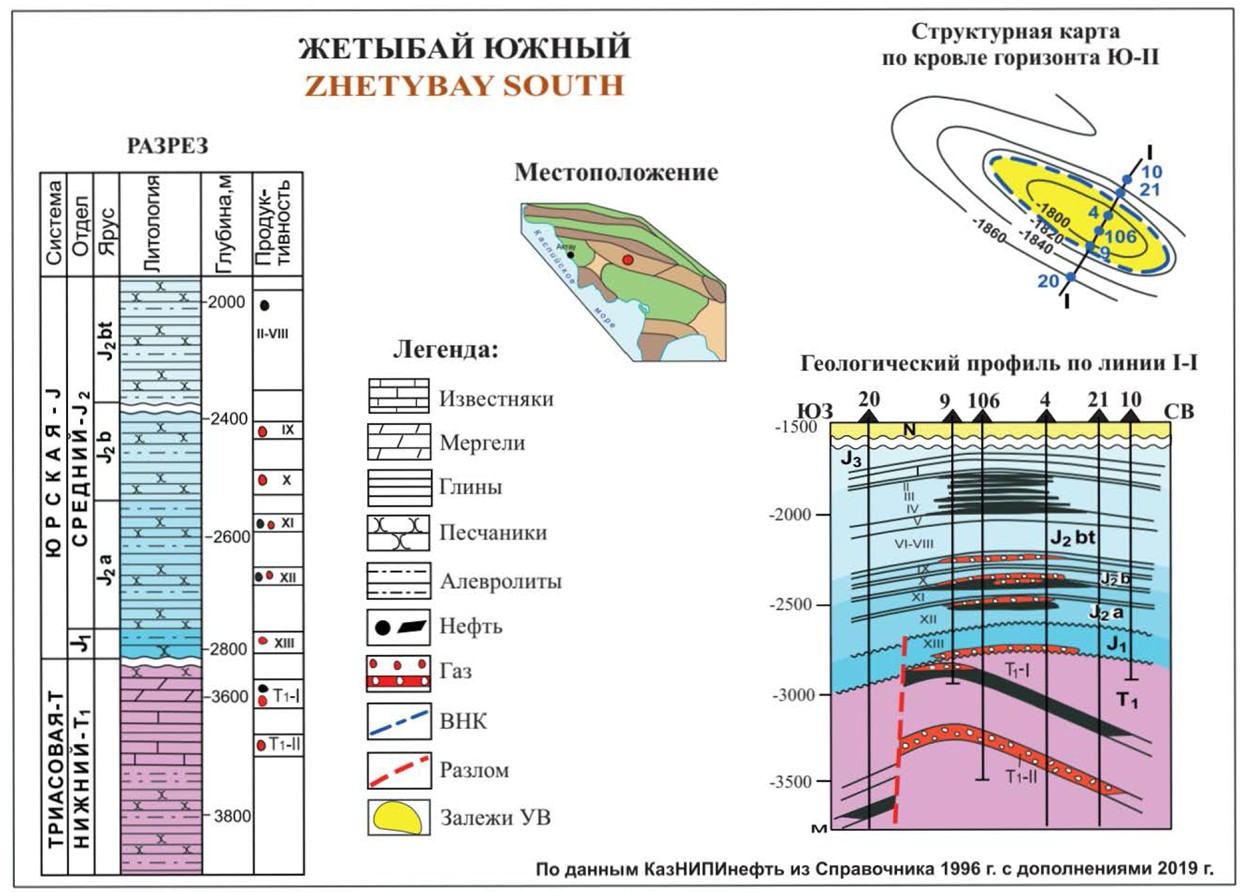 Источник: Атлас нефтяных и газовых месторождений республики Казахстан. Атлас в 2-х томах / Турков О.С. и др. - Алматы: 00 «Казахстанское Общество Нефтяников-Геологов», 2020