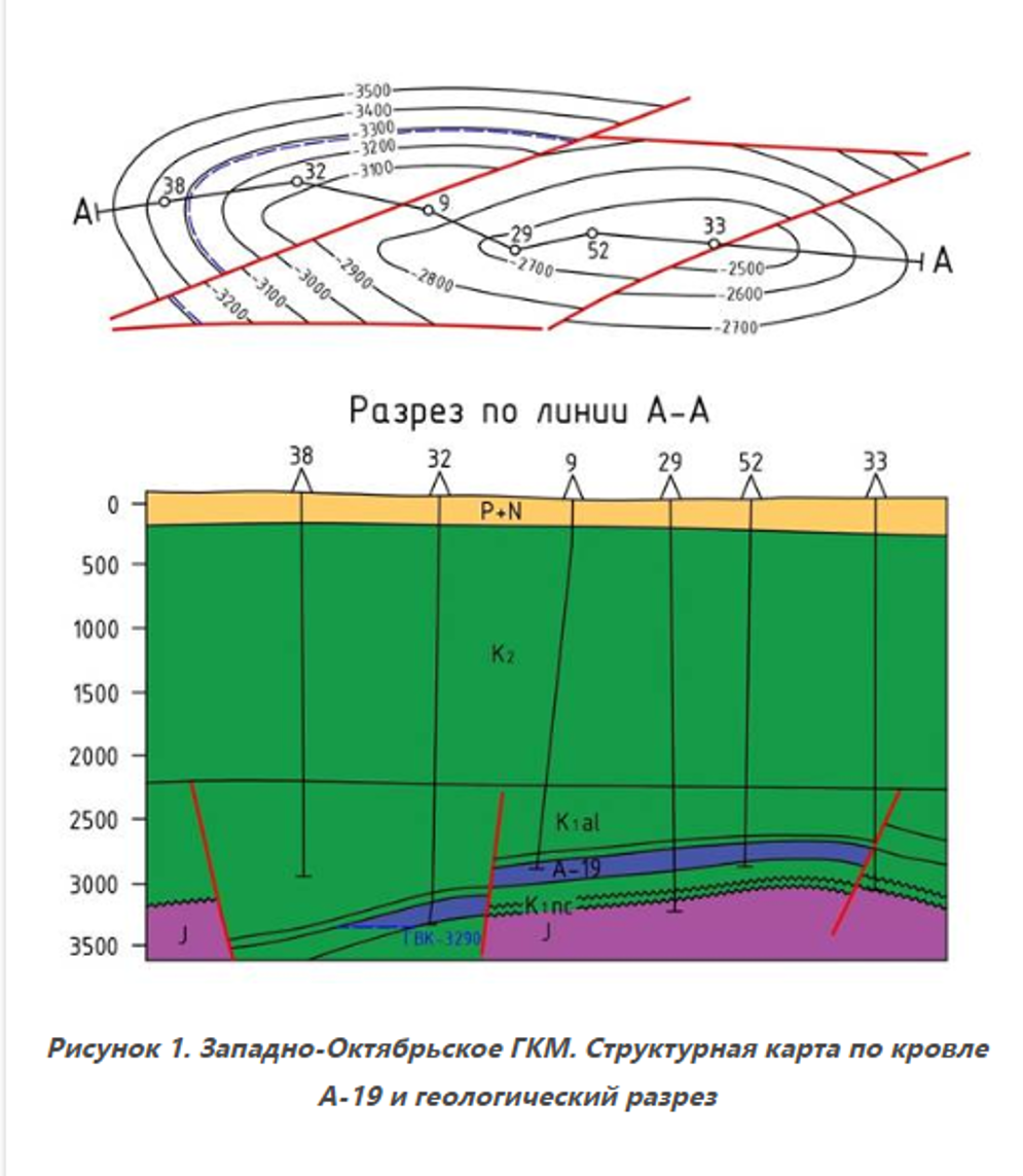 Западно-Октябрьское газоконденсатное месторождение, расположенное западнее Октябрьского поднятия, приурочено к асимметричной брахиантиклинальной складке субширотного простирания, в строении которой принимает участие тот же комплекс пород. Однако Западно-Октябрьская складка погружена почти на 300 м, поэтому осадки неогена в своде ложатся на размытые слои палеоцена. Общая мощность платформенного чехла составляет 3060— 3480 м.