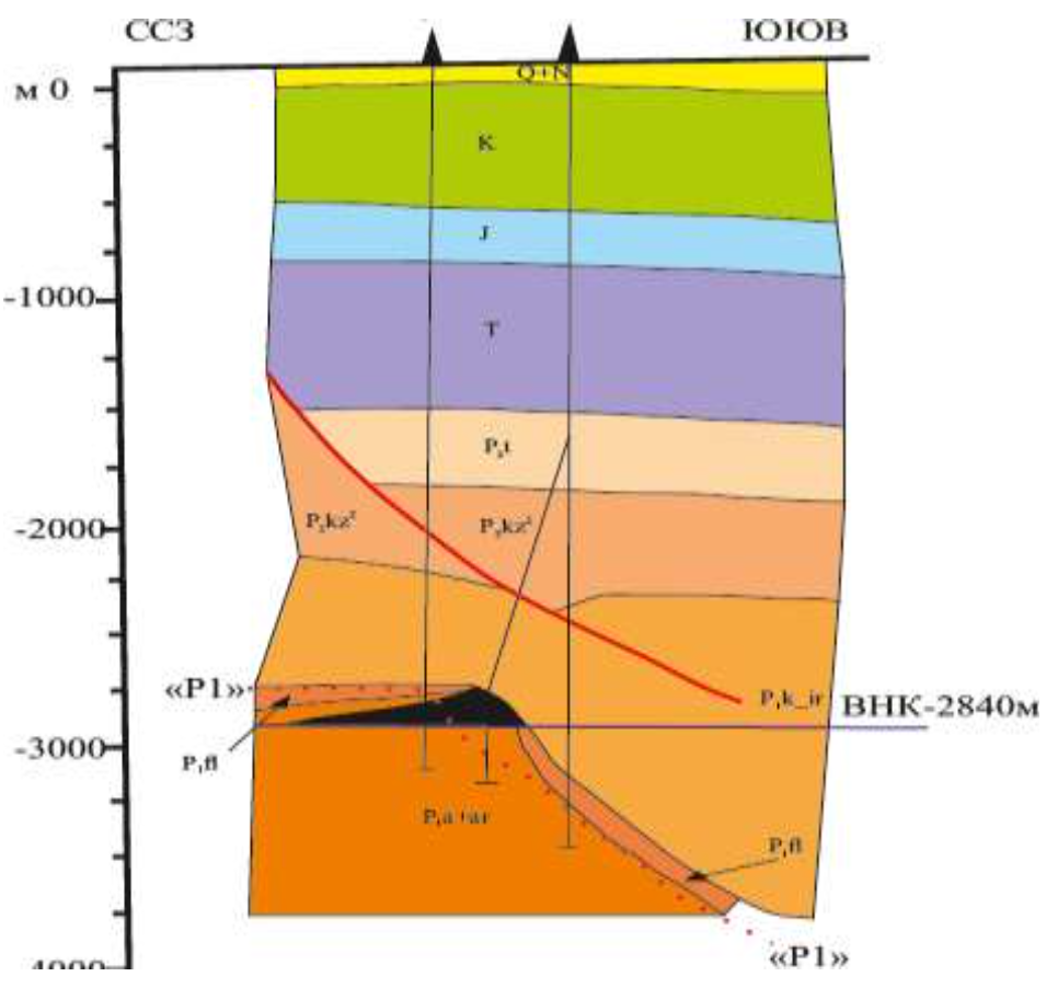 Рис. 1. Поперечный разрез месторождения в северо-восточной части участка [3]
