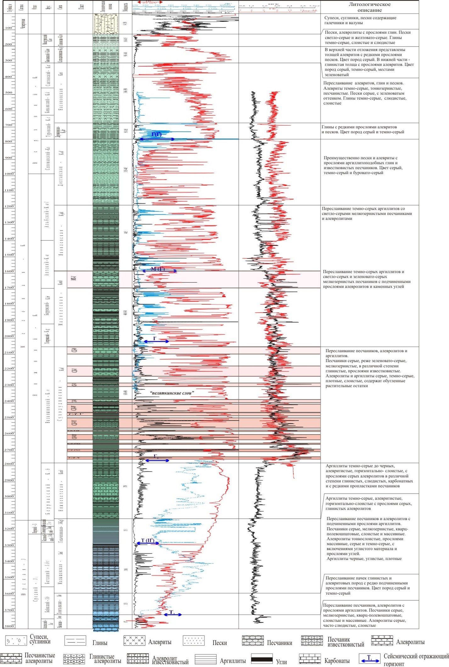 Рис.2. Сводный геолого-геофизический разрез Пеляткинского месторождения