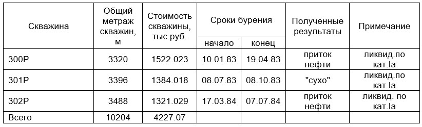 При опробовании юрских отложений притоки нефти были получены из 300Р и 302Р скважин, скважина  301Р по ИП оказалась “сухой”.