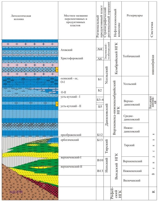 Подсолевые венд-нижнекембрийские отложения, являющиеся основной нефтегазоперспективной толщей, несогласно залегают на размытой поверхности кристаллического фундамента.