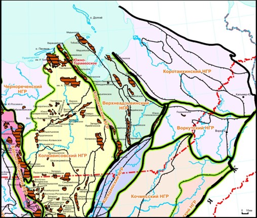 Рис.4. Фрагмент схемы нефтегазогеологического районирования