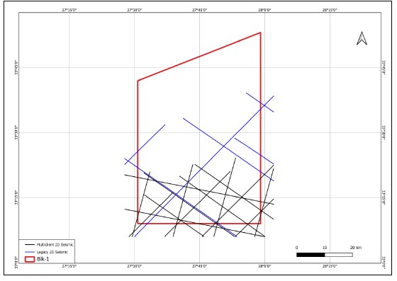 2D Seismic data: 220 Km (Legacy), 497 Km (Multiclient)