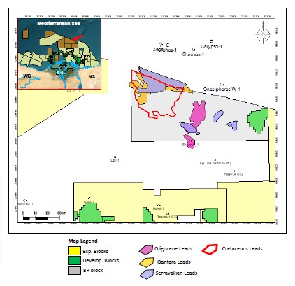 Resources- 2 Oligocene leads with one extended to the (BR-Block-5) andstacked in different Miocene levels,1 Qantara, 4 Serravallian &1 Cretaceous stacked with multiple levels in Miocene Section