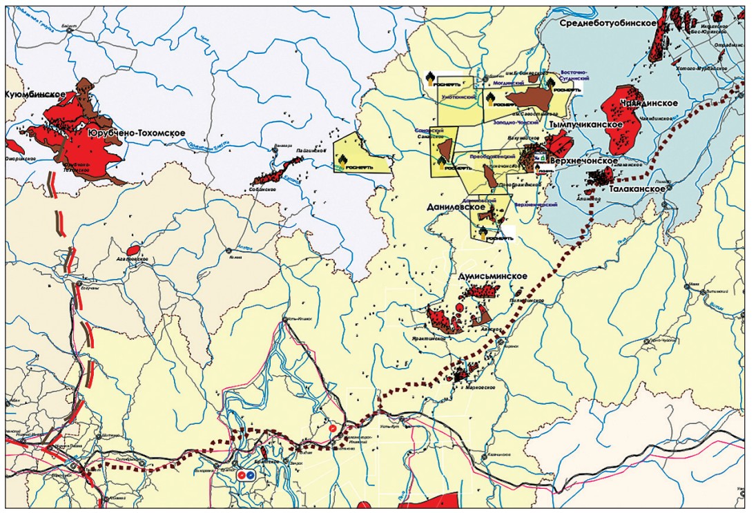 Рис.1. Расположение основных нефтяных месторождений на территории Лено-Тунгусской НГП