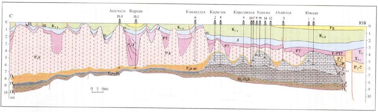 Рис.2. Геологический разрез Каратон-Тенгизской НГЗ