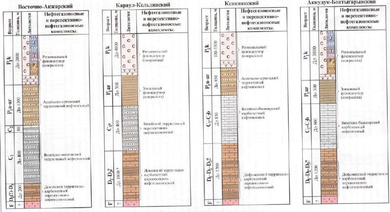 Источник: Глубинное строение и минеральные ресурсы Казахстана. Том 3. НЕФТЬ И ГАЗ, Алматы, 2002 г., 248с. С.Ж. Даукеев, Э.С. Воцалевский, Д.А. Шлыгин, В.М. Пилифосов