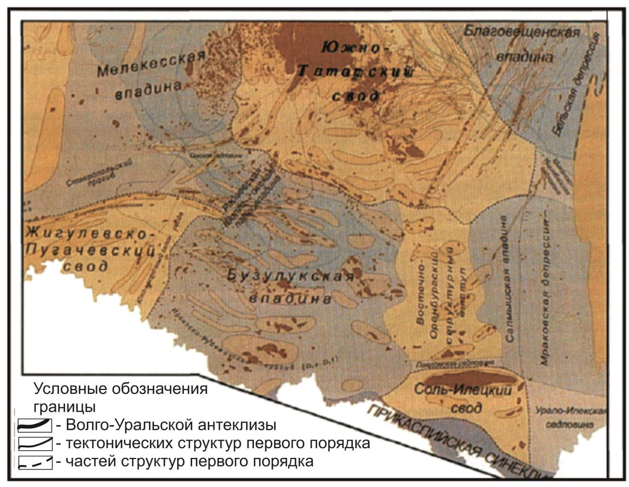 Рисунок 1 – Фрагмент тектонической схемы Волго-Уральской провинции